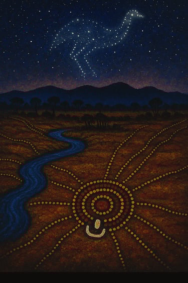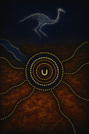 I grew up in Tamworth. The Peel River, the Moonbi Range and nights under the Emu in the Sky are part of how I remember the world. Songlines of Tamworth is my attempt to turn those memories into images. I use AI to help imagine and assemble visual layers, then finish each piece by hand and work with Kamilaroi custodians to ensure cultural respect. These works are my stories, translated by technology, refined by people, and shared so others can experience Country in a new way.
